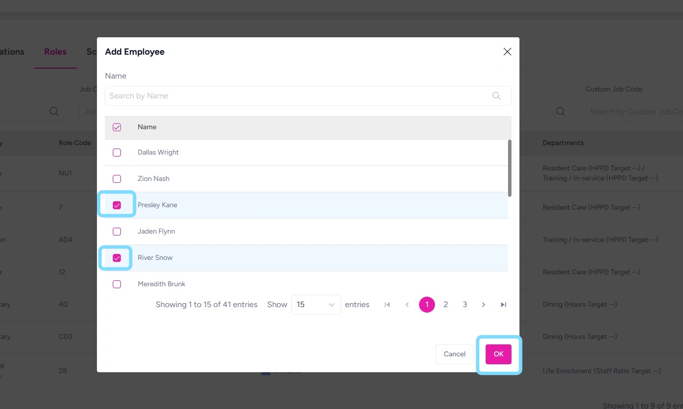 10. Select the checkboxes next to the employees to be added to this role.