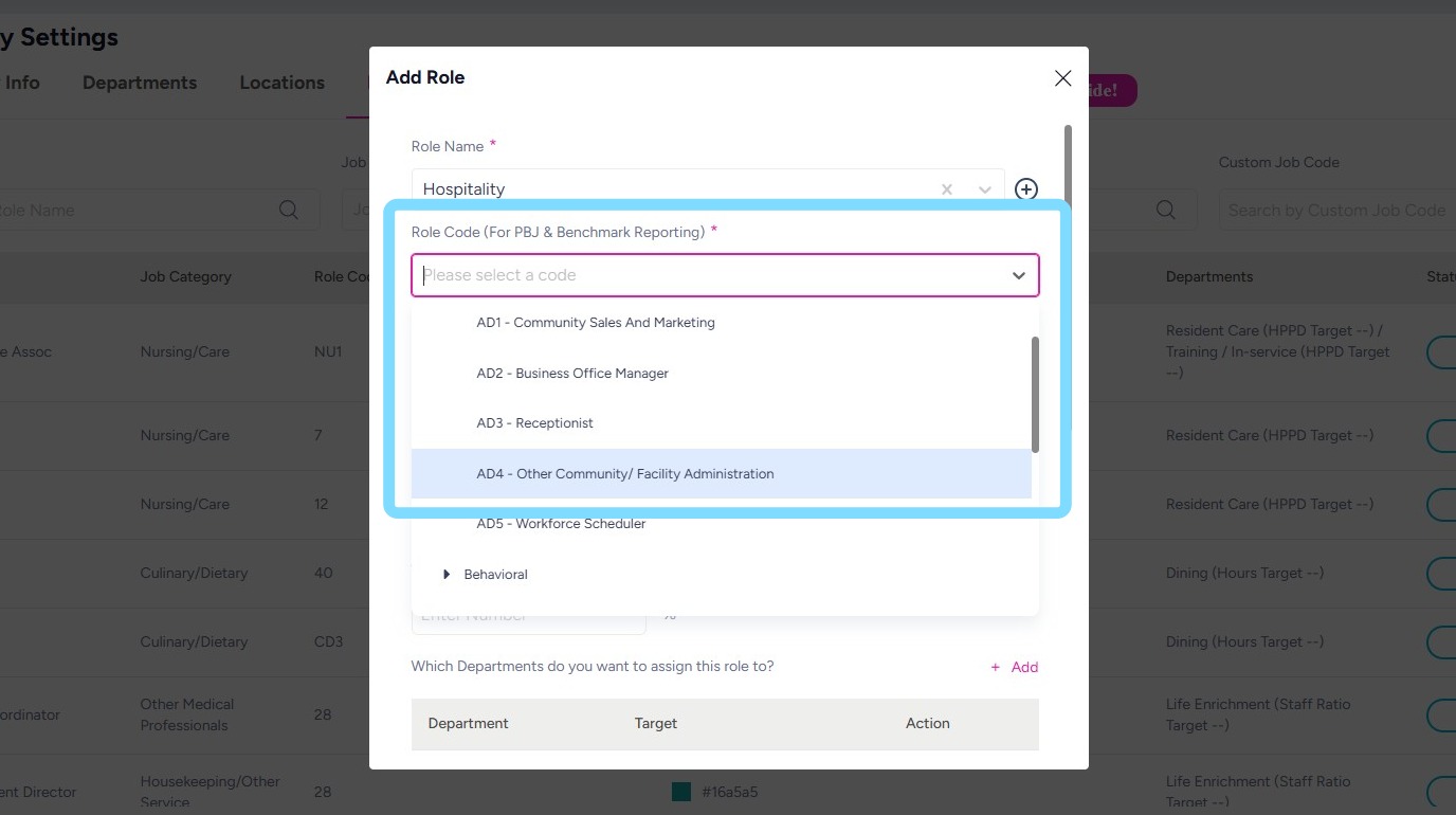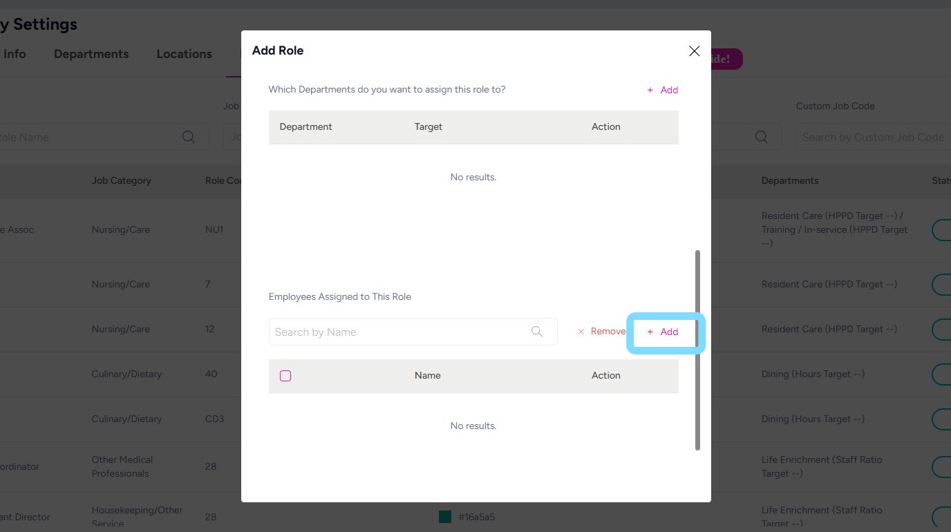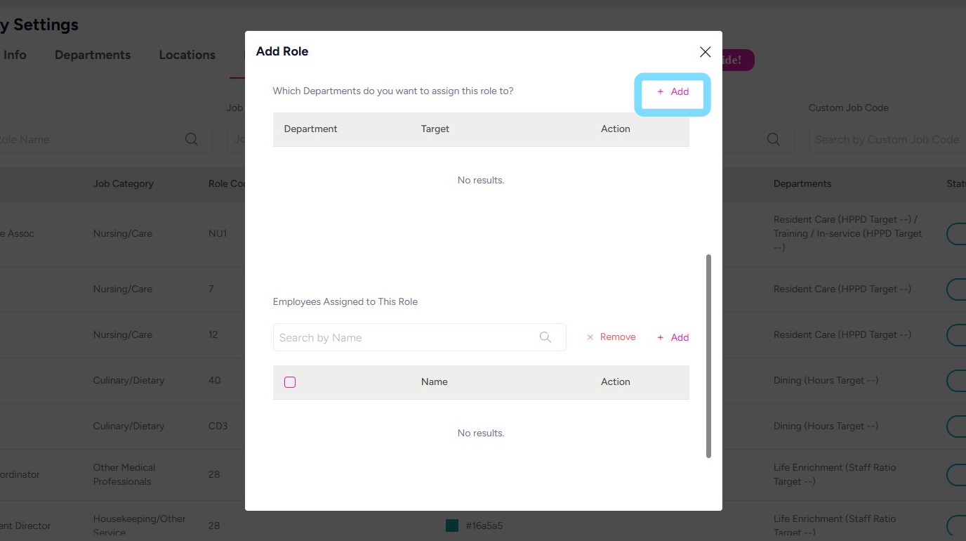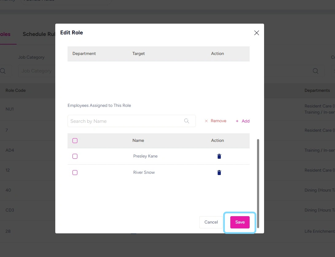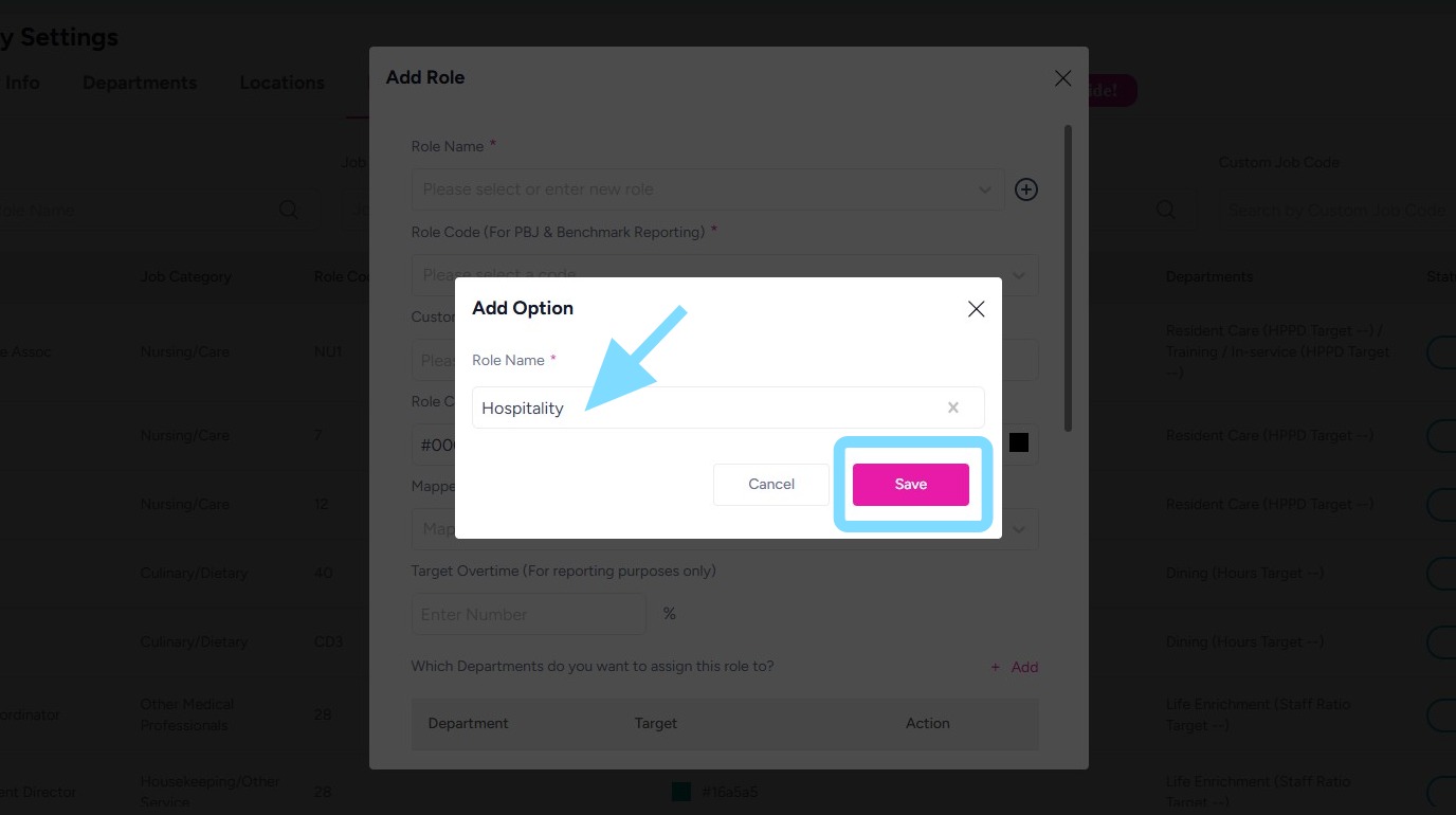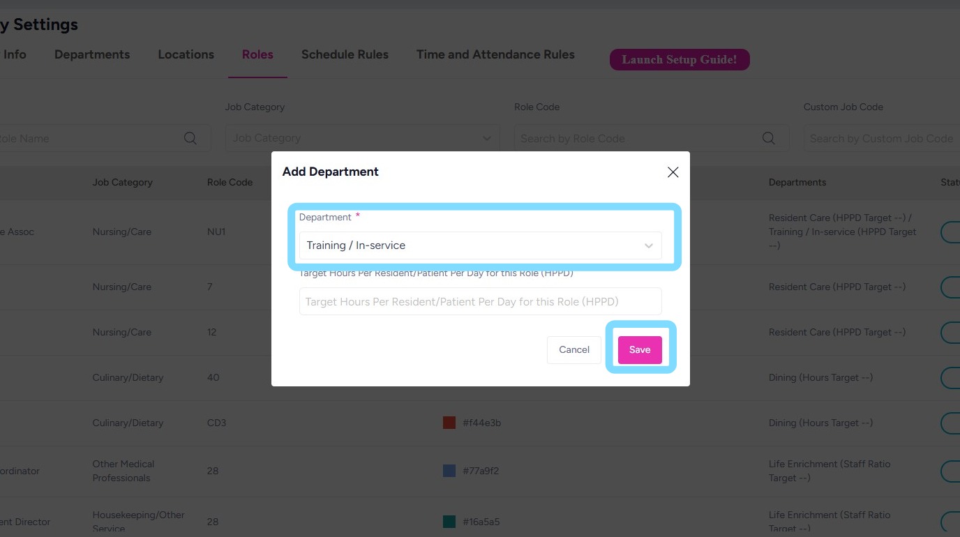 7. Assign the role to a department so it can be scheduled within that department’s schedule.