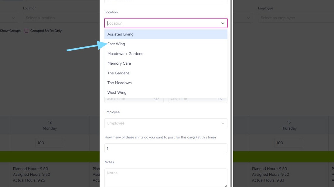 5. Great! Now you’ll see this Location as an option in the drop down when adding shifts.