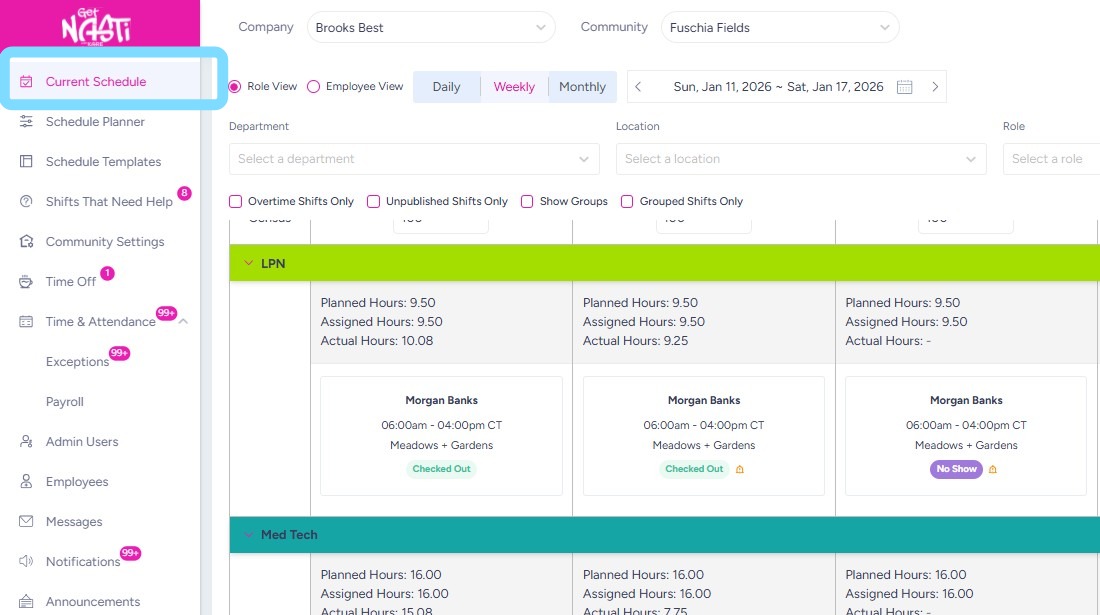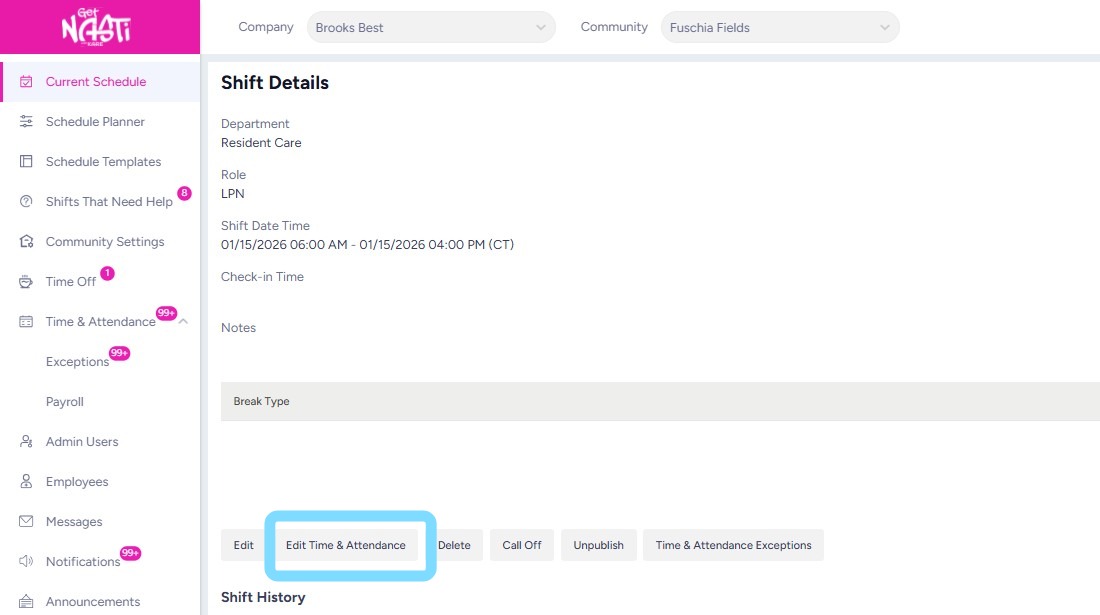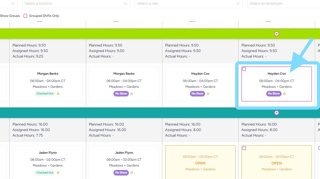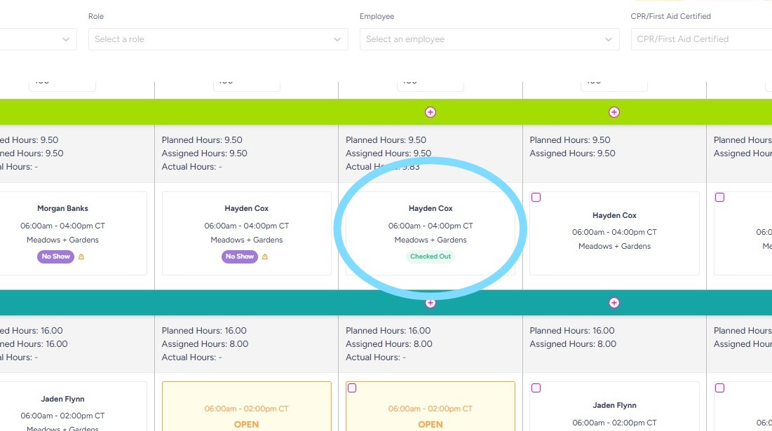 5. Done!! Shift box now shows green Checked Out badge indicating time has been entered for shift.