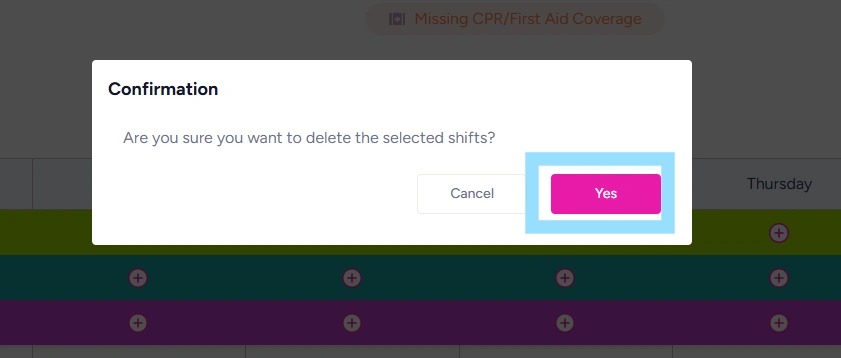 8. To delete shifts on a template, check the box within the shift(s) to be deleted.
