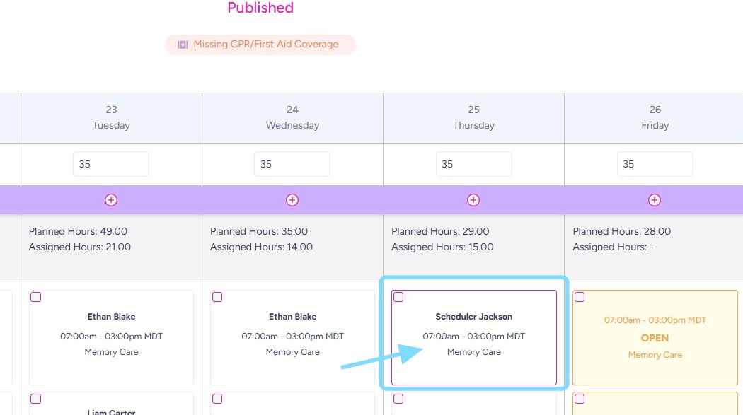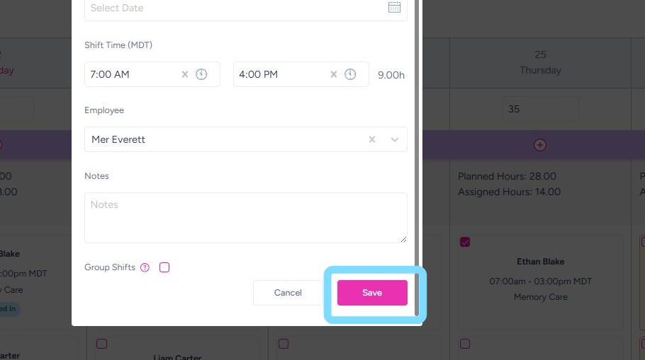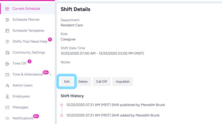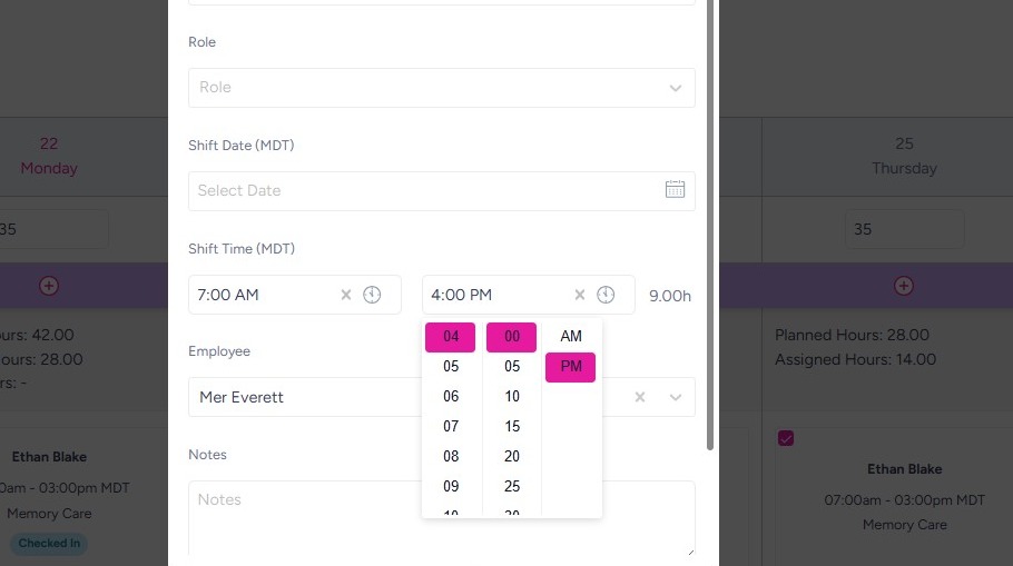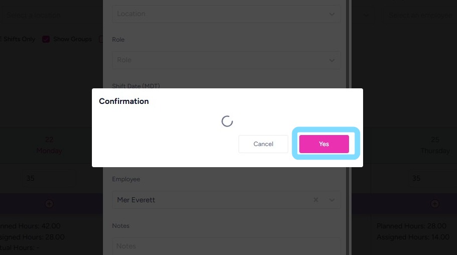 4. Edit any relevant details for the selected shift, such as date, time, role, or assigned employee.