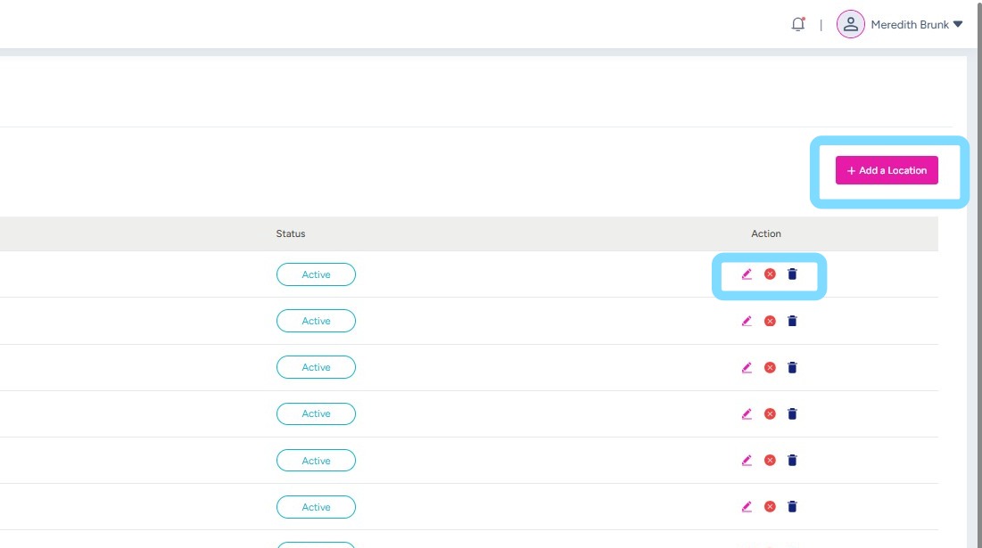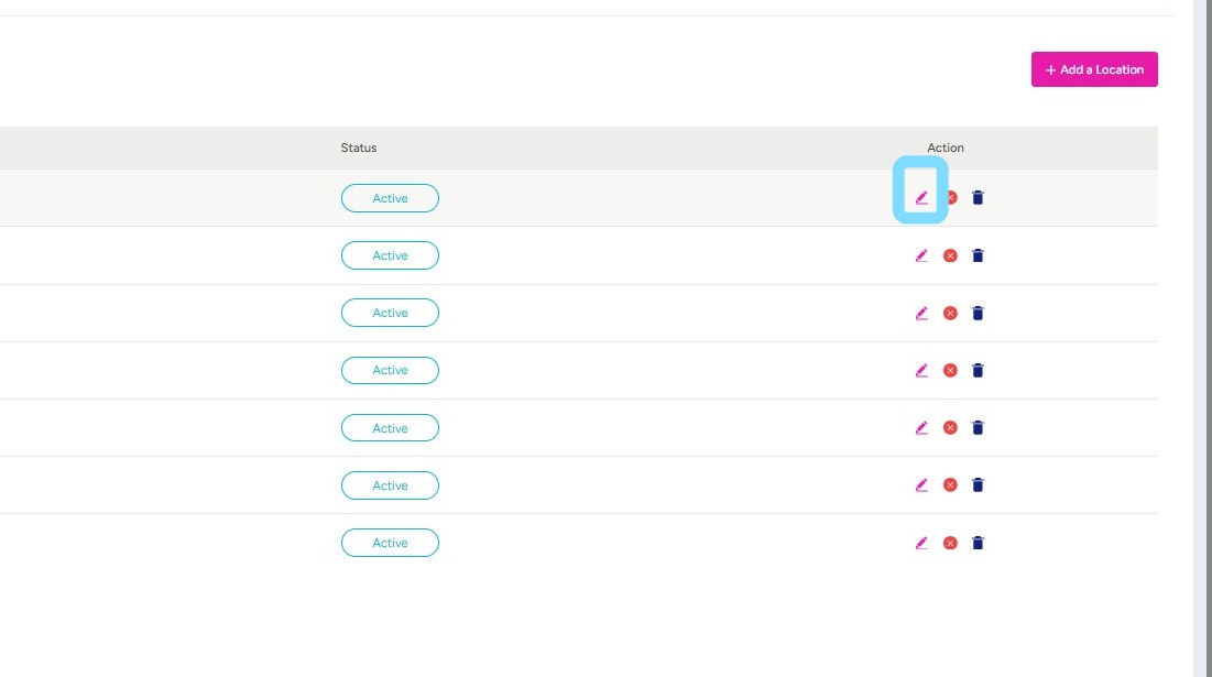 2. Admin User can now choose to add a location by selecting the + Add a Location