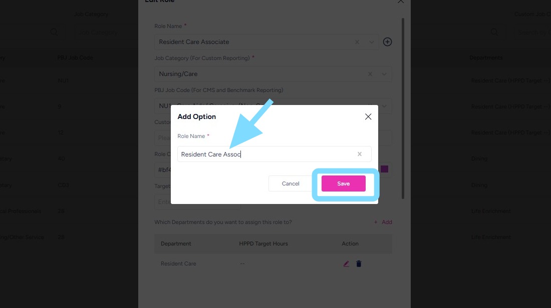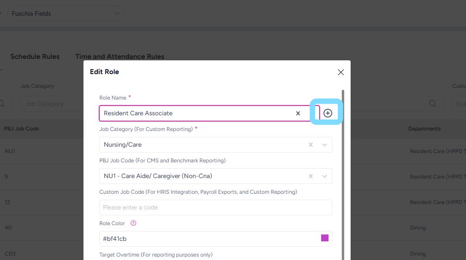 5. In this example, the user is changing the name of the Role by selecting the + icon