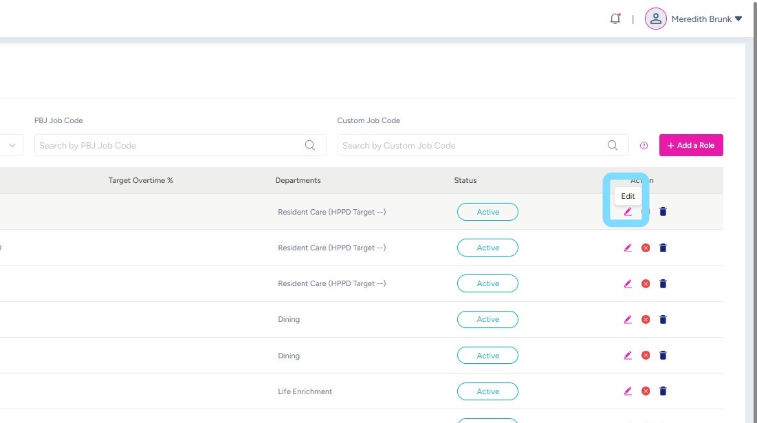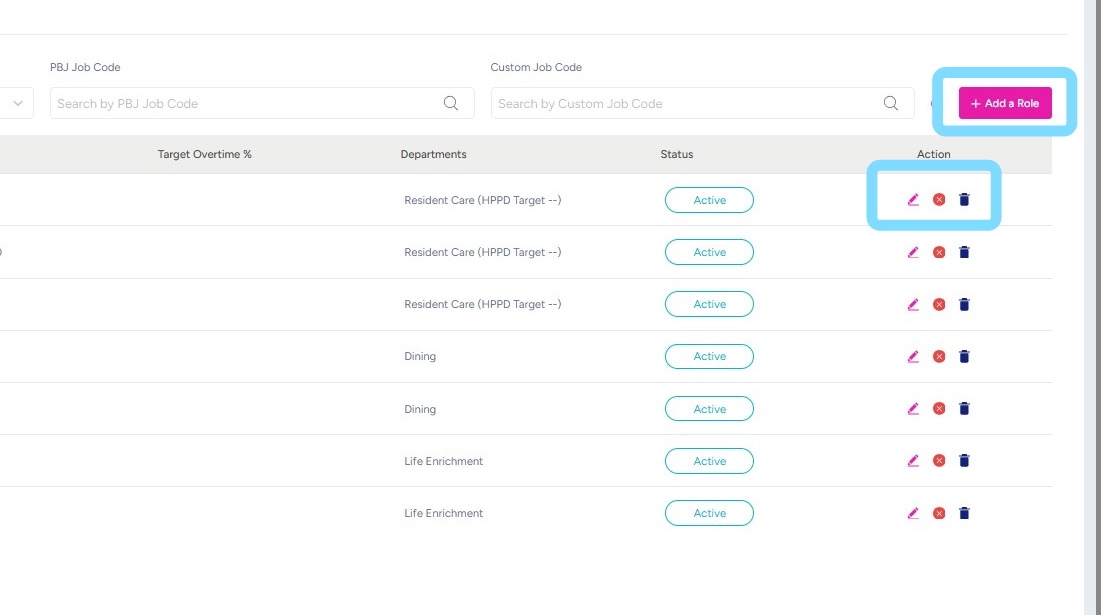 or Admin User may edit, deactivate or delete a Role by selecting the corresponding icons