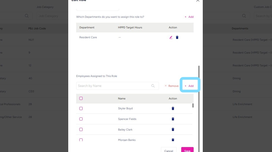 7. In this example, the user is assigning additional employees to this Role by selecting +Add under Employees Assigned to This Role.