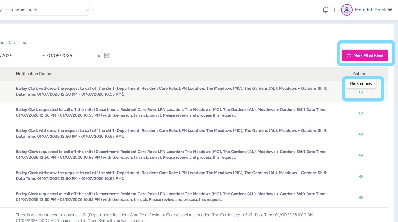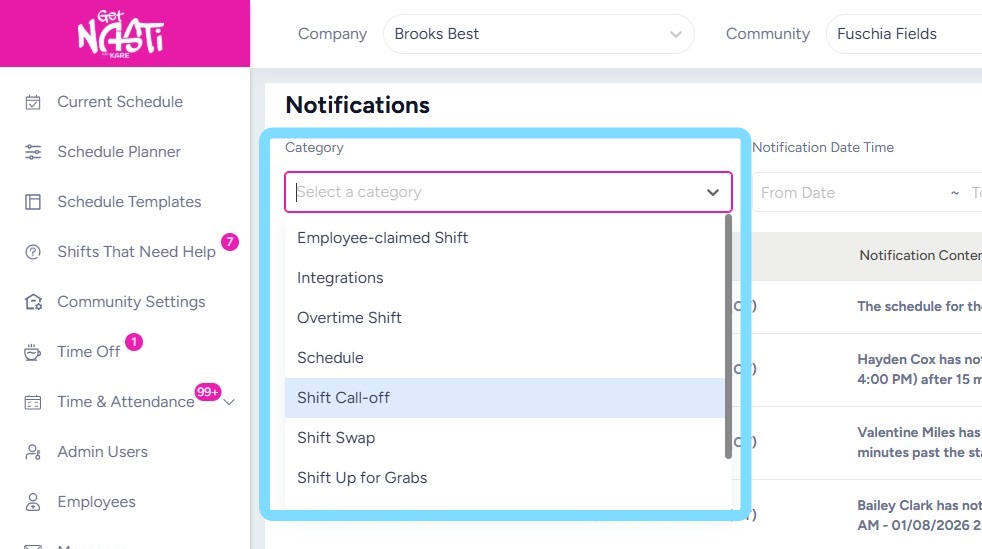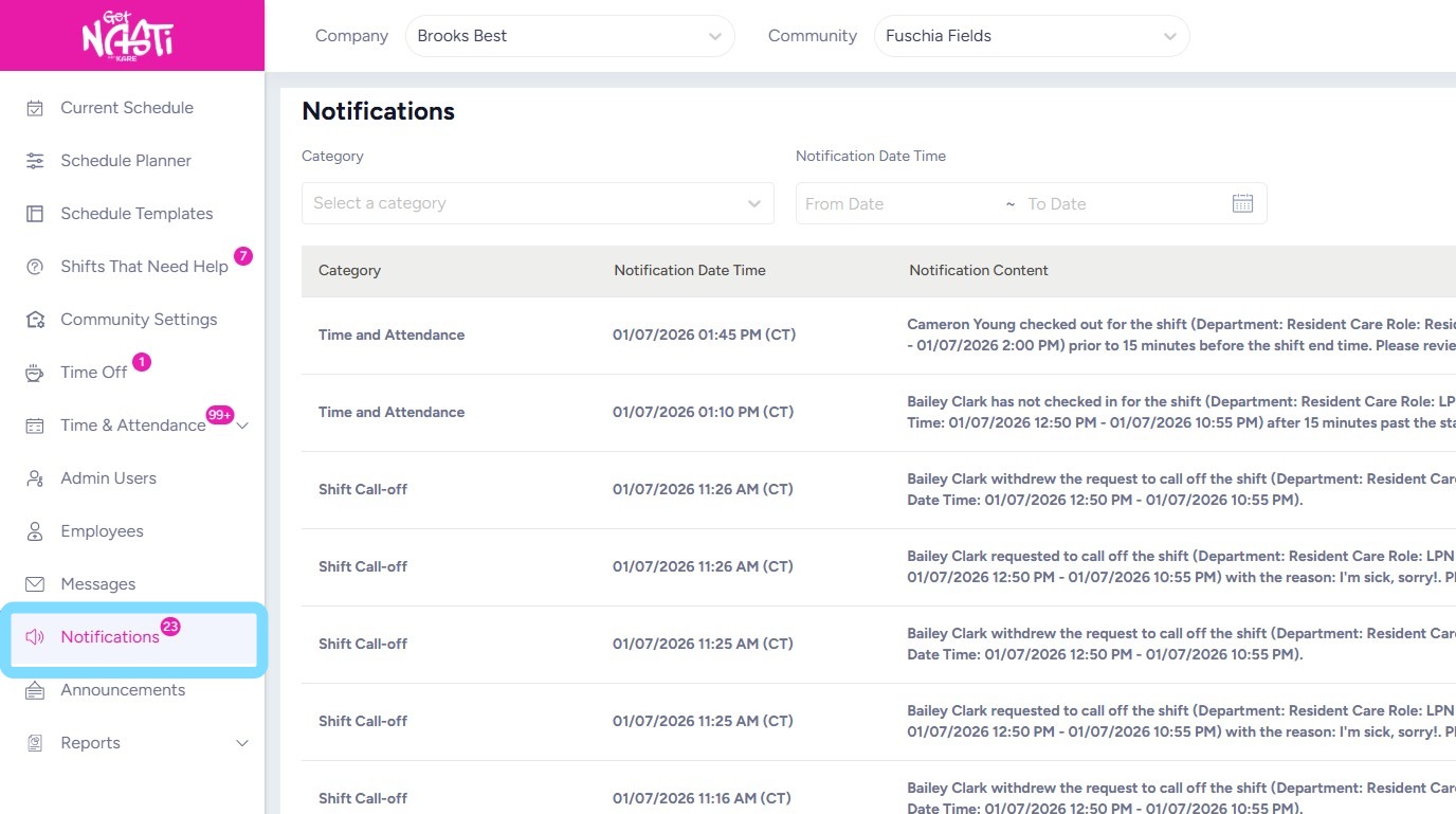 This guide supports you in managing notifications so you can stay organized and focused. Learn how to filter and clear notifications to prioritize what matters and cut through the noise. Notifications alert you to key schedule and workforce updates, such as when a schedule is published, employee no shows, delayed check-ins or early check-outs, time-off request submissions, shifts swaps, etc.