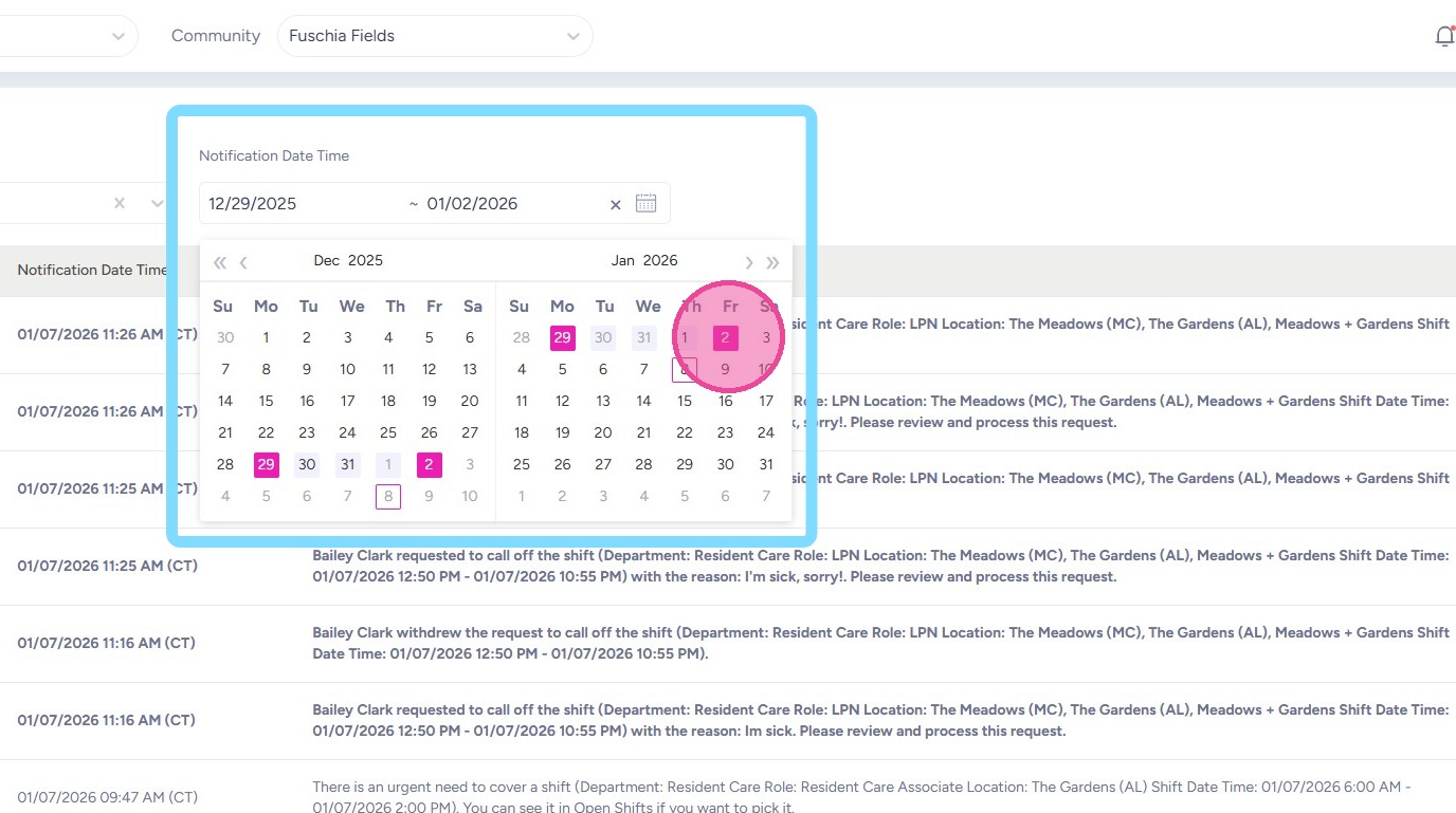 4. To filter notifications by date, select from the Notification Date Time dropdown list.