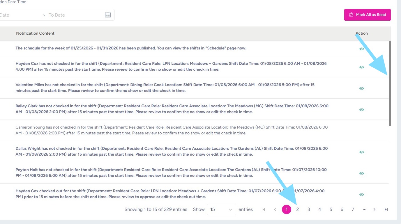2. Navigate through notifications by using the scroll bar and/or tabbing through the pages.