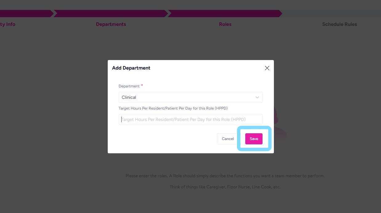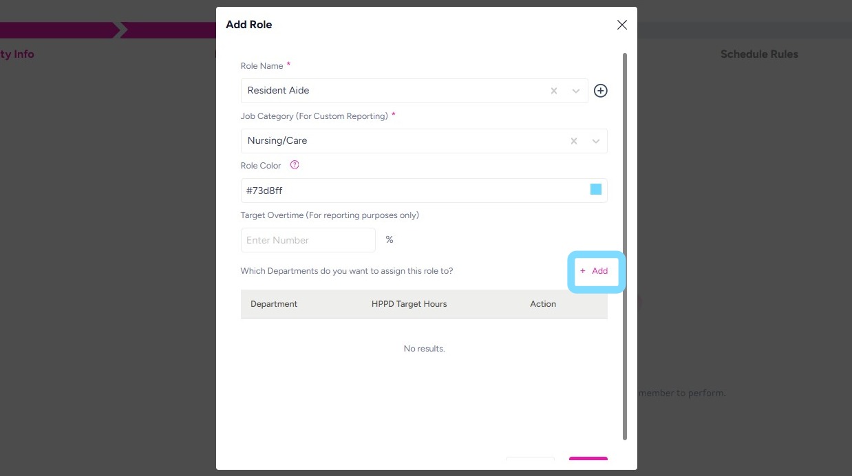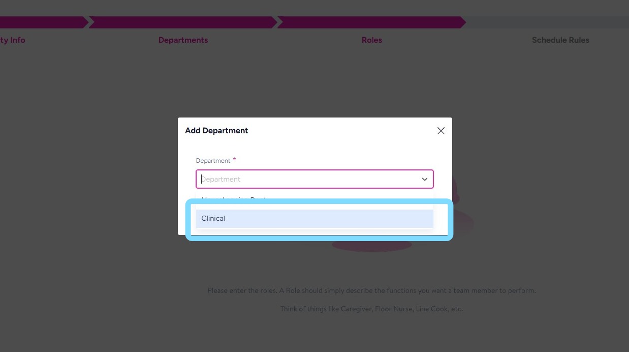 For example, this role of Resident Aide will be added to the Clinical Department.