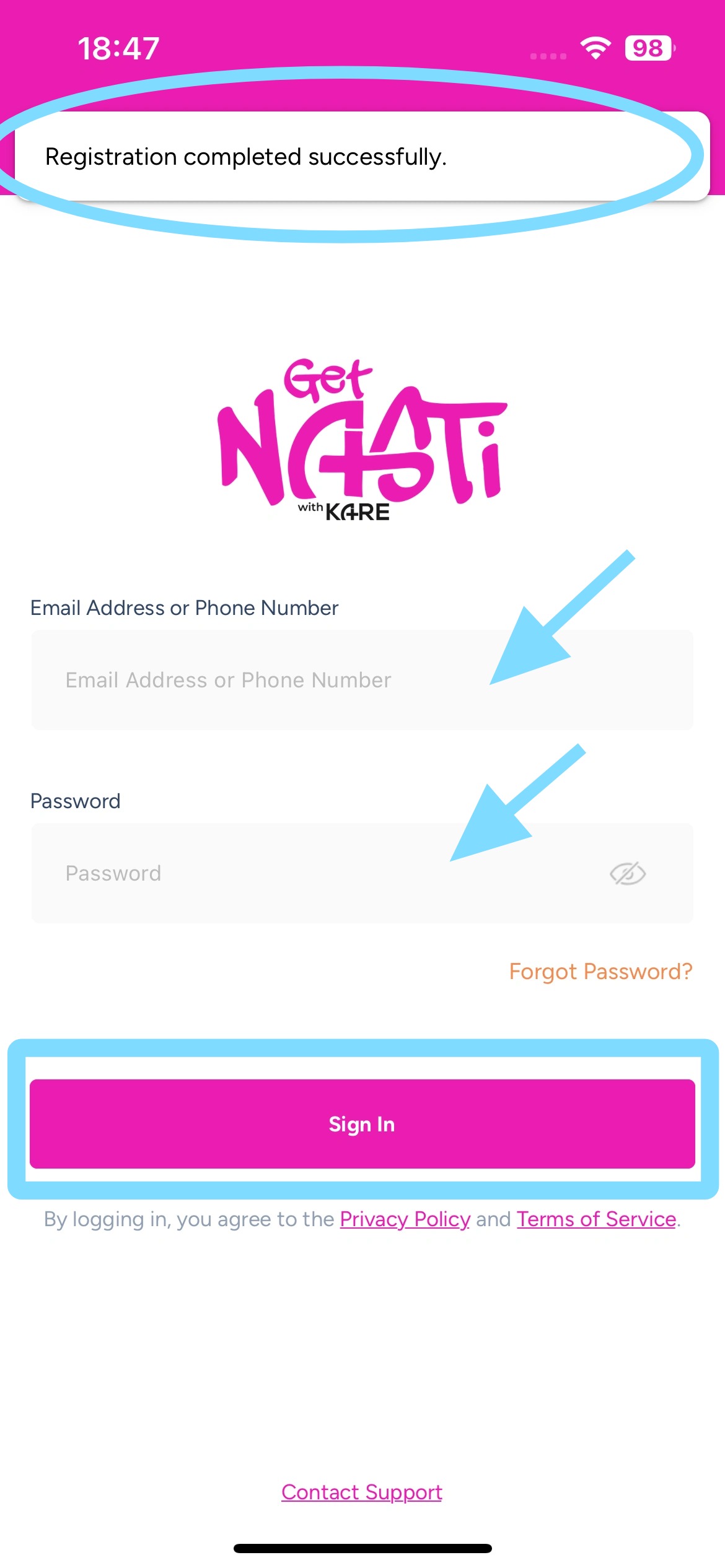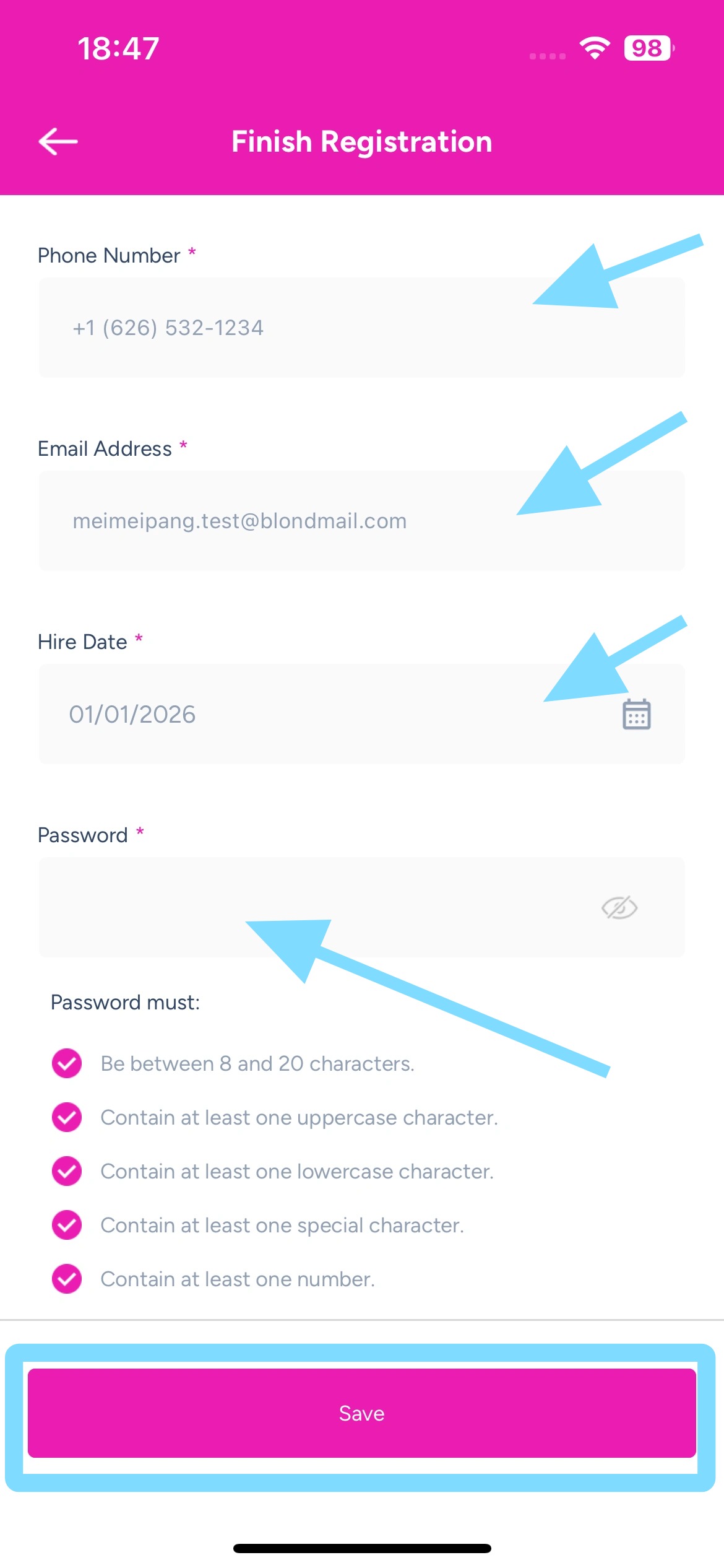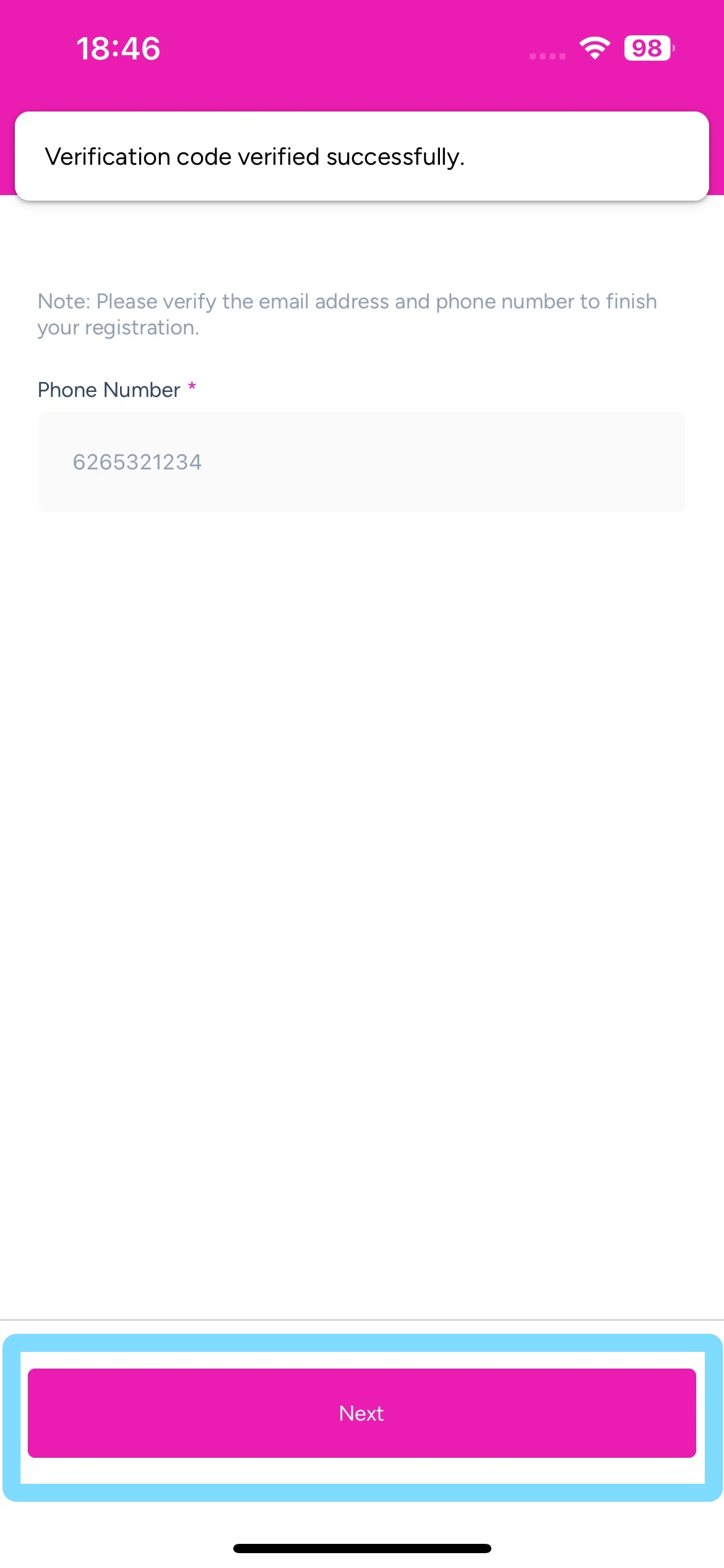 5. Now the app is open and you’ll be prompted to finish your registration by verifying your phone number and email address and setting a password.