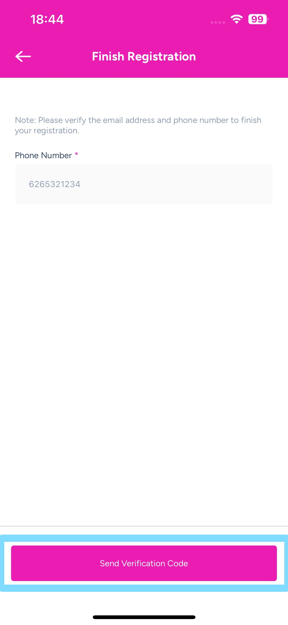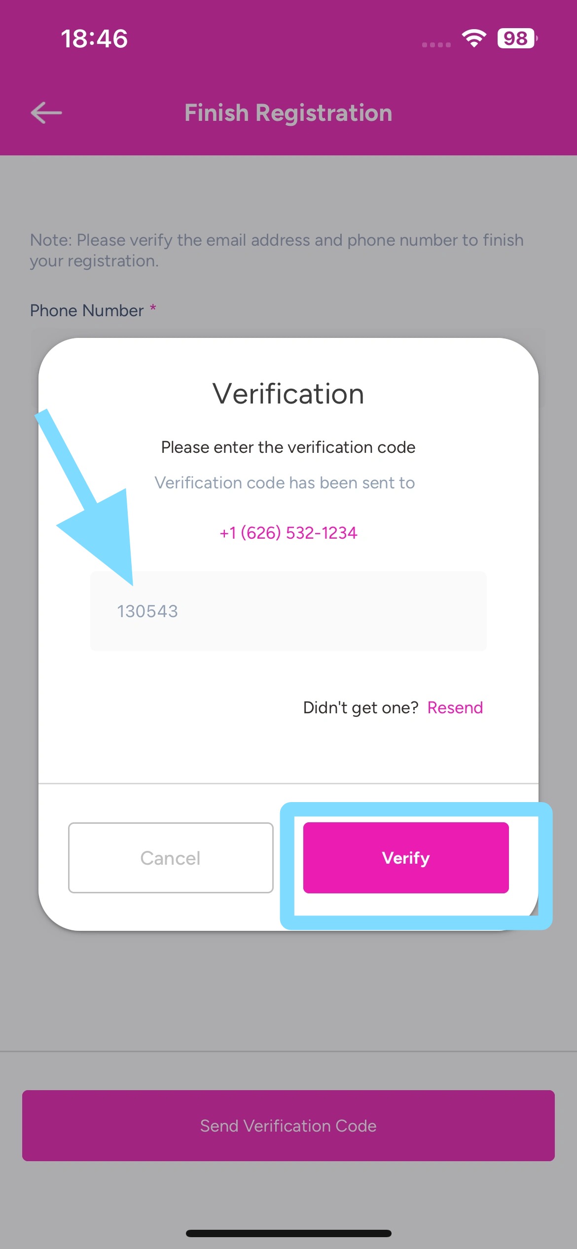 Tap Send Verification Code.