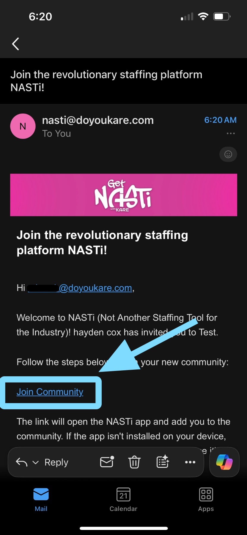 1. Find your NASTi Invite via email or text.