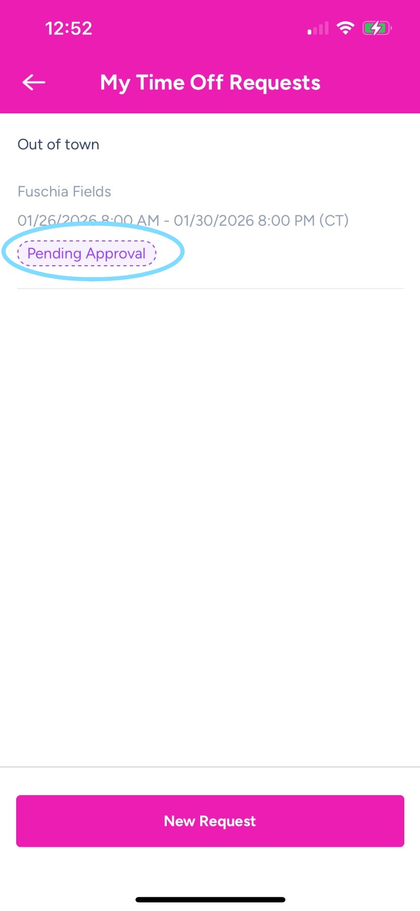 A Pending Approval badge means your request has been sent to a Scheduler or Admin for approval. Once approved, you won’t be scheduled for shifts during this time off.