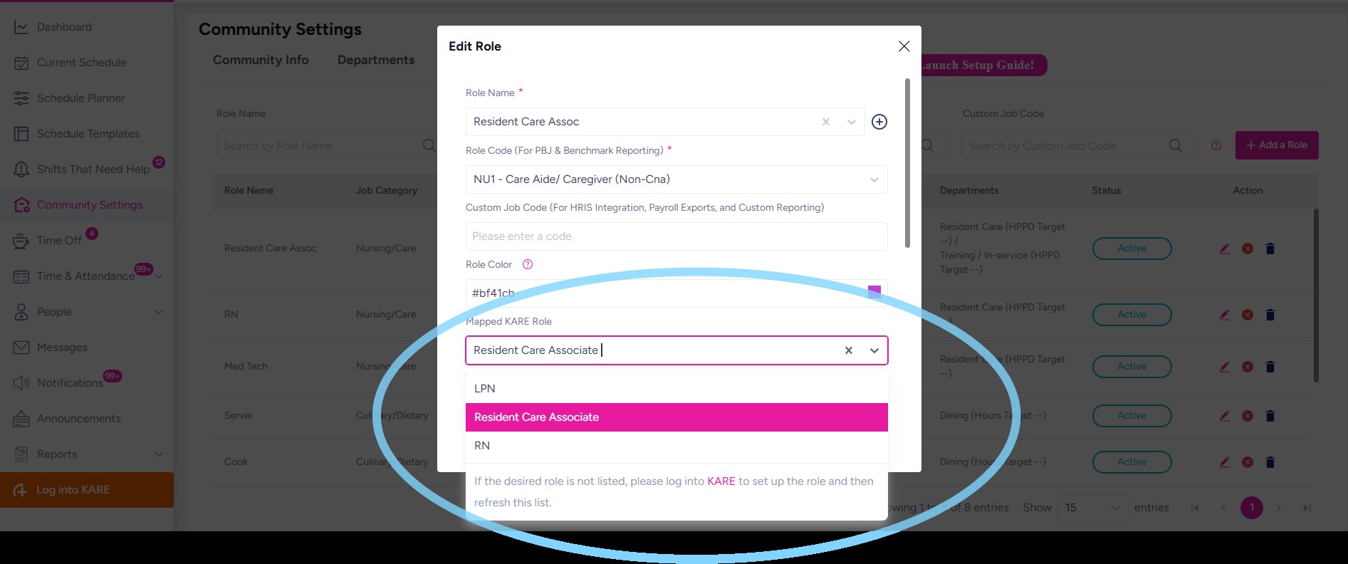Navigate to Community Settings → Roles, then select the role and assign the appropriate KARE Role.