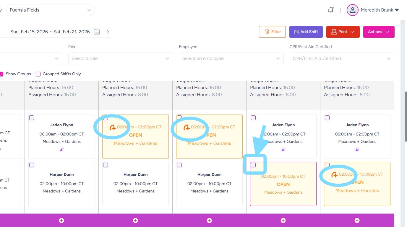 To manually send a shift to KARE, select the box in the corner of the shift.