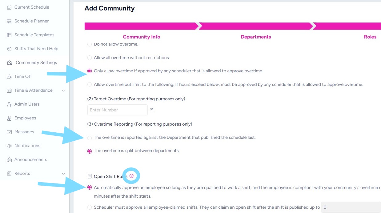 1. Schedule Rules is where the magic happens! These are the guardrails that keep labor costs under control, prevent overtime leaks, and make sure shifts run smoothly. You’ll choose rules for: Overtime, Open Shifts, Partial Shifts, Up for Grabs Shifts and Call Offs.